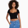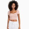 Bershka ženy pletený sveter s krátkym rukávom a srdiečkovým výstrihom krém oblečenie B86RXX541 Bershka Slovakia
