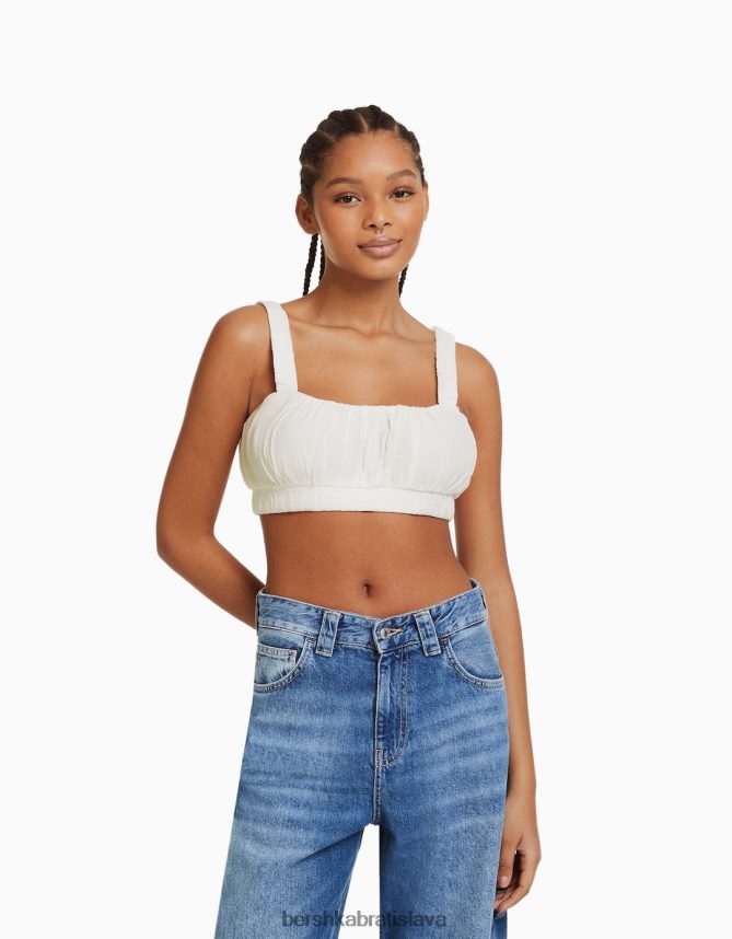 Bershka ženy popruhový krepový top bralette krém oblečenie B86RXX1919 Bershka Rifle