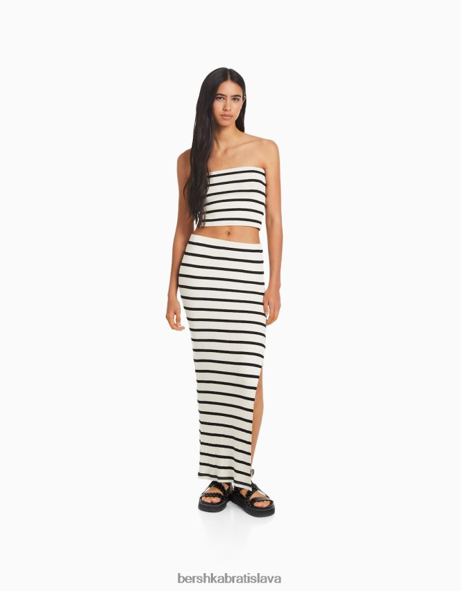 Bershka ženy pruhovaná midi sukňa krém oblečenie B86RXX1622 Bershka Rifle
