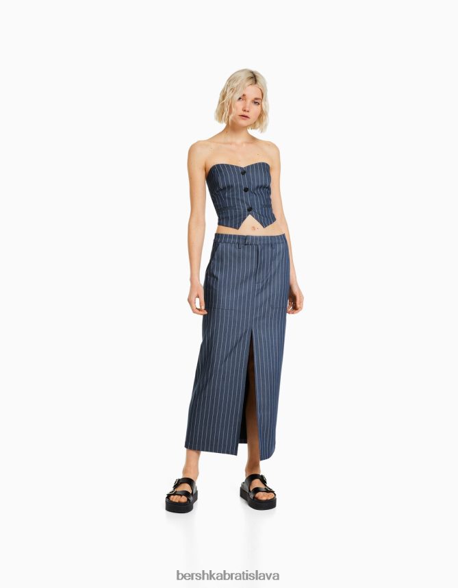 Bershka ženy pruhovaná vesta a sukňa tmavo modrá oblečenie B86RXX2000 Bershka Rifle