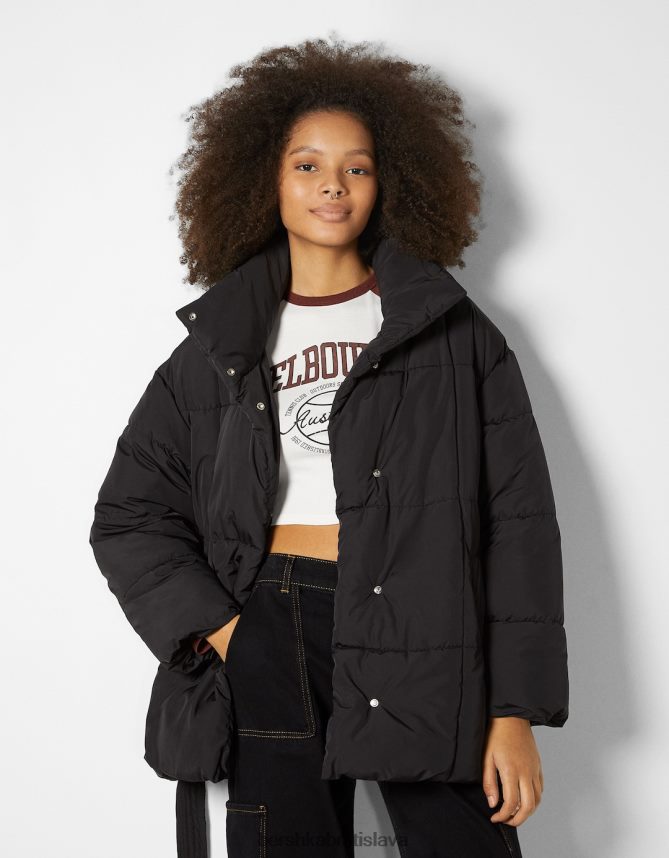 Bershka ženy pufer kabát s opaskom čierna oblečenie B86RXX1178 Bershka Rifle