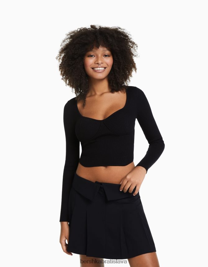 Bershka ženy rebrovaný úplet v korzetovom štýle čierna oblečenie B86RXX1017 Bershka Nohavice