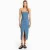 Bershka ženy relax fit denimové minišaty na plecia svetlo modrá oblečenie B86RXX1947 Bershka Nohavice