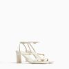 Bershka ženy remienkové sandále na vysokom opätku s remienkom na členky ecru obuv B86RXX2142 Bershka Nohavice