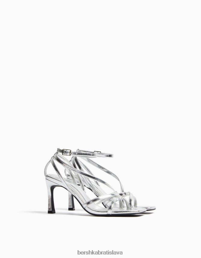 Bershka ženy remienkové sandále na vysokom opätku s remienkom na členky striebro obuv B86RXX2177 Bershka Rifle