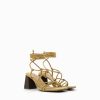 Bershka ženy remienkové sandále na vysokom opätku s remienkom na členky zelená obuv B86RXX2156 Bershka Rifle