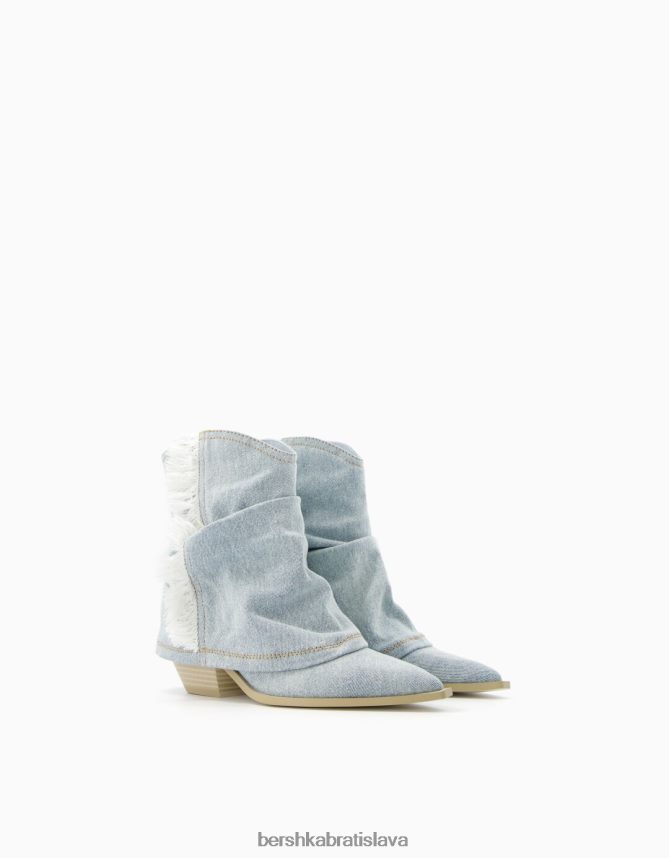 Bershka ženy rifľové kovbojské členkové čižmy so strapcami vymytá modrá obuv B86RXX1943 Bershka Rifle