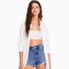 Bershka ženy rustikálna košeľa v štýle kimono s krátkym rukávom biela oblečenie B86RXX915 Bershka Nohavice