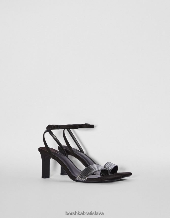 Bershka ženy sandále na podpätku s remienkom na členok a kovovým náprstkom čierna obuv B86RXX2197 Bershka Slovakia