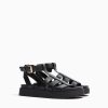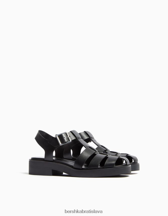 Bershka ženy sandále s plochou klietkou čierna obuv B86RXX1895 Bershka Rifle