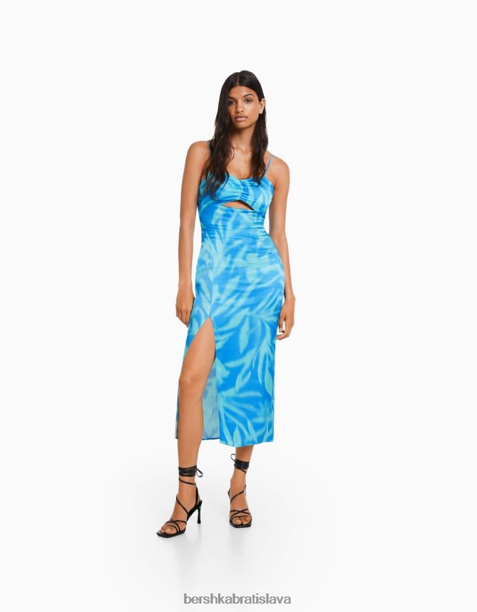Bershka ženy saténové midi šaty s potlačou na ramienka viacfarebný oblečenie B86RXX159 Bershka Nohavice