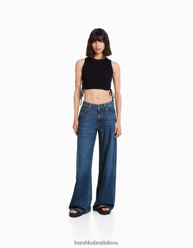 Bershka ženy široké džínsy modrá oblečenie B86RXX1487 Bershka Rifle