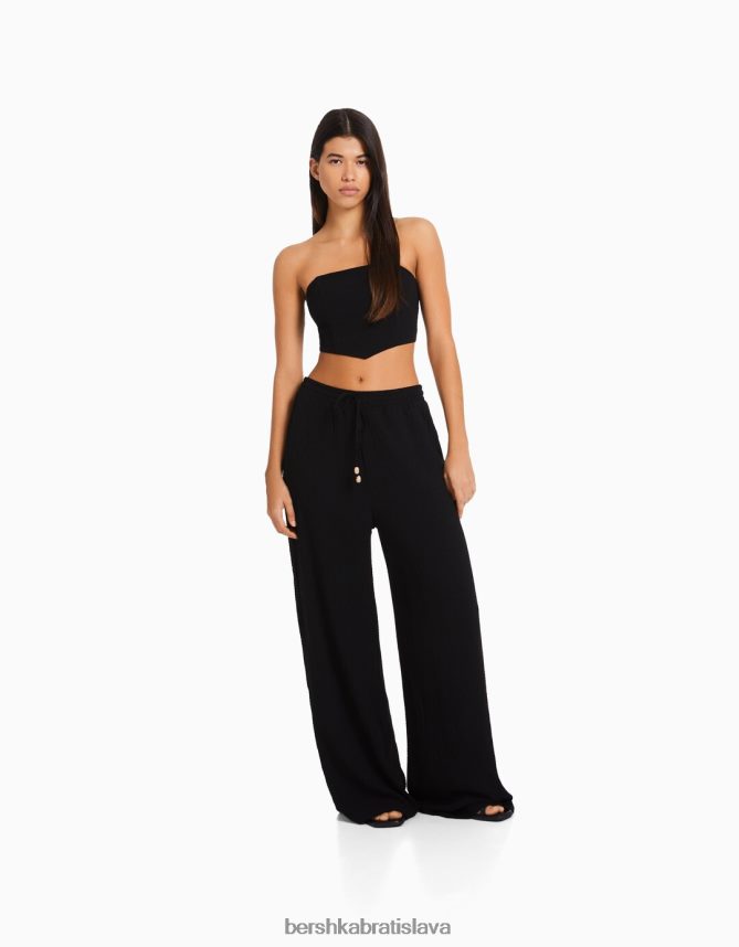 Bershka ženy široké nohavice s reliéfom čierna oblečenie B86RXX1404 Bershka Nohavice