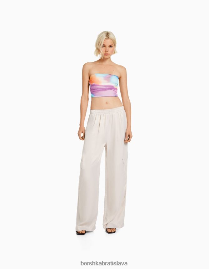 Bershka ženy široké saténové nohavice s vreckom kameň oblečenie B86RXX1324 Bershka Slovakia