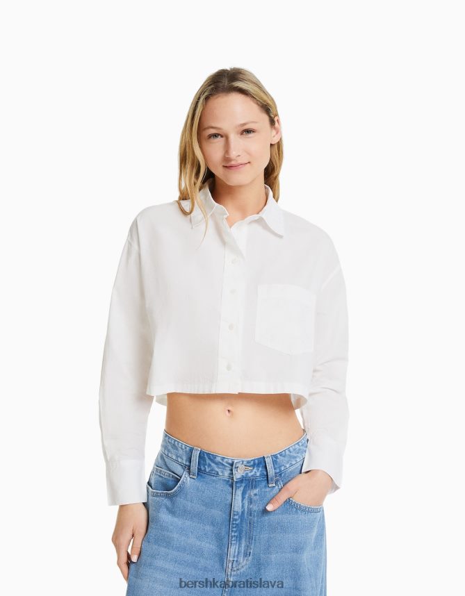 Bershka ženy skrátená popelínová košeľa s dlhým rukávom biela oblečenie B86RXX933 Bershka Nohavice