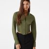 Bershka ženy skrátená popelínová košeľa s dlhým rukávom svetlo modrá oblečenie B86RXX931 Bershka Slovakia