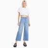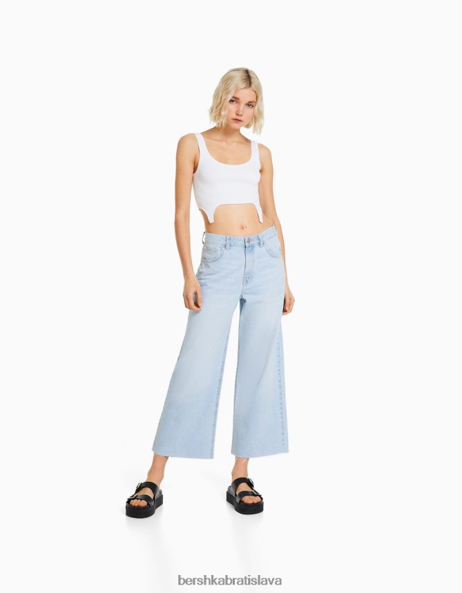 Bershka ženy skrátené džínsy so širokými nohavicami svetlo modrá oblečenie B86RXX1515 Bershka Nohavice