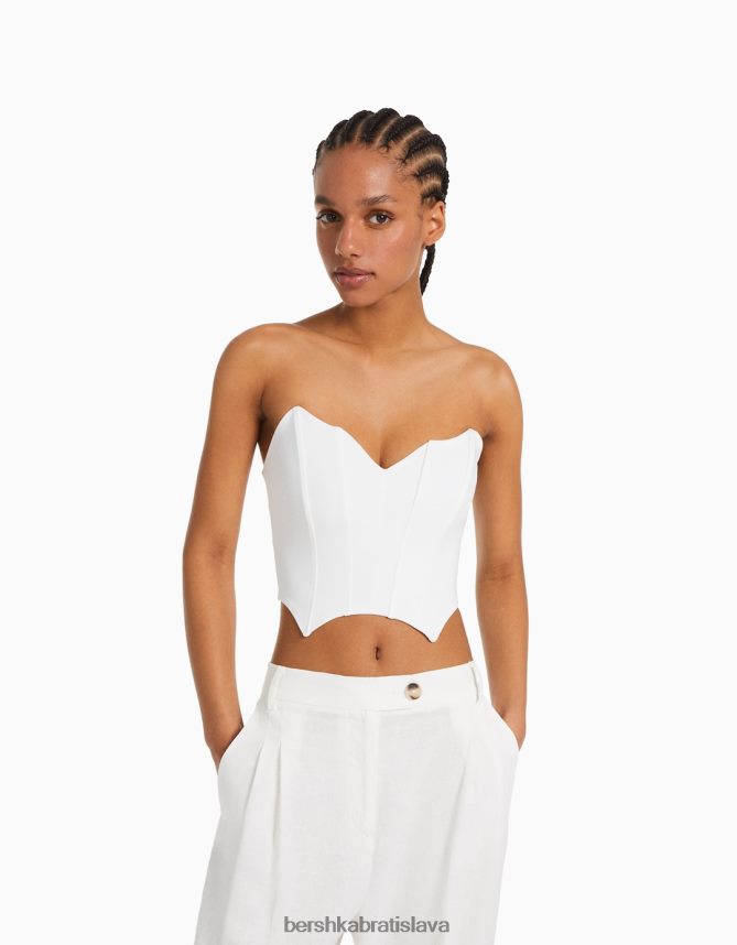 Bershka ženy skrátený korzet s véčkovým výstrihom biela oblečenie B86RXX691 Bershka Slovakia