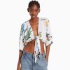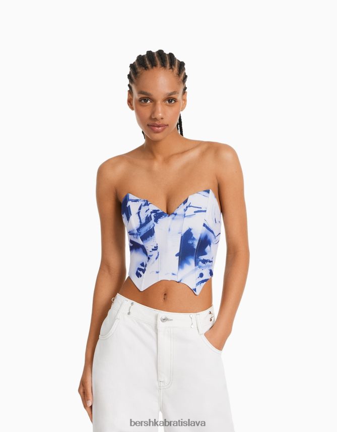 Bershka ženy skrátený korzet s véčkovým výstrihom modrá oblečenie B86RXX740 Bershka Rifle