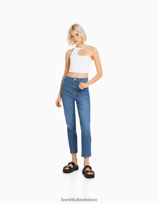 Bershka ženy štíhle džínsy pohodlného strihu modrá oblečenie B86RXX1520 Bershka Rifle