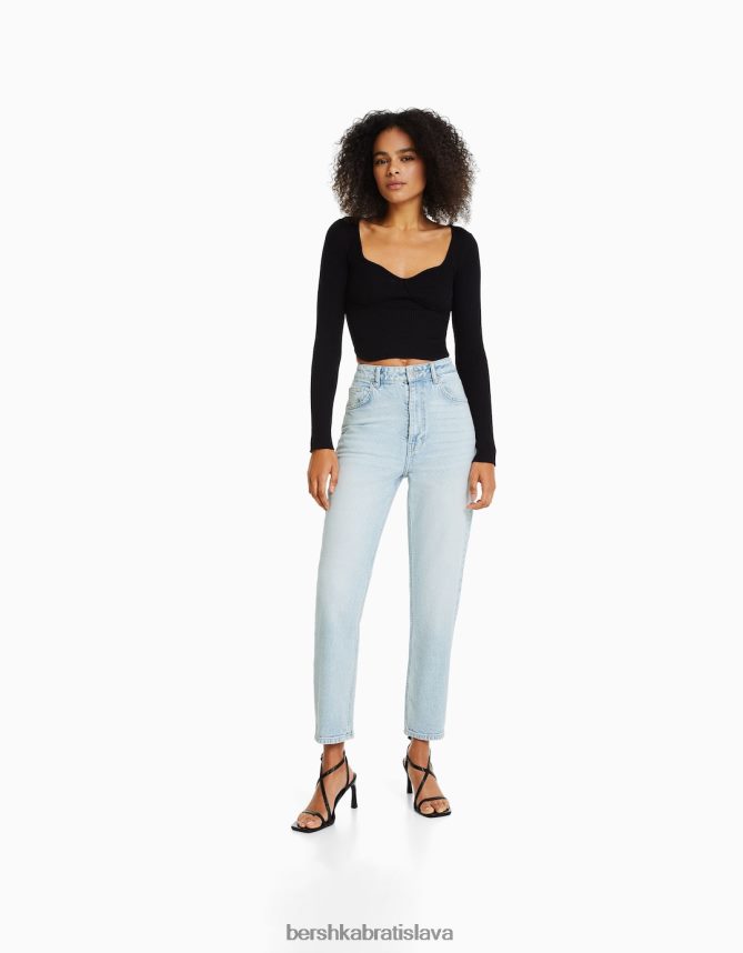 Bershka ženy štíhle džínsy pohodlného strihu svetlo modrá oblečenie B86RXX1985 Bershka Rifle