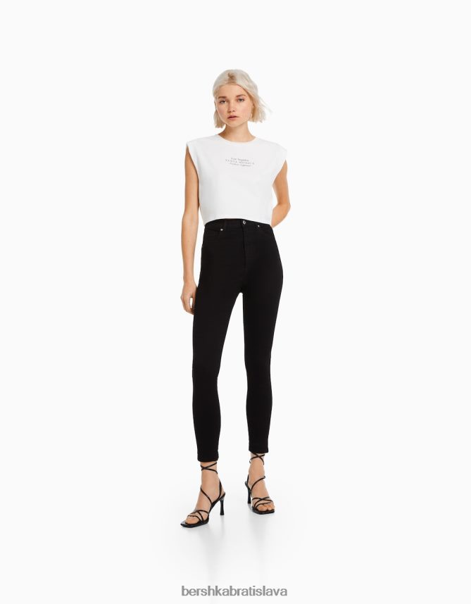 Bershka ženy super vysoké úzke džínsy čierna oblečenie B86RXX1502 Bershka Rifle