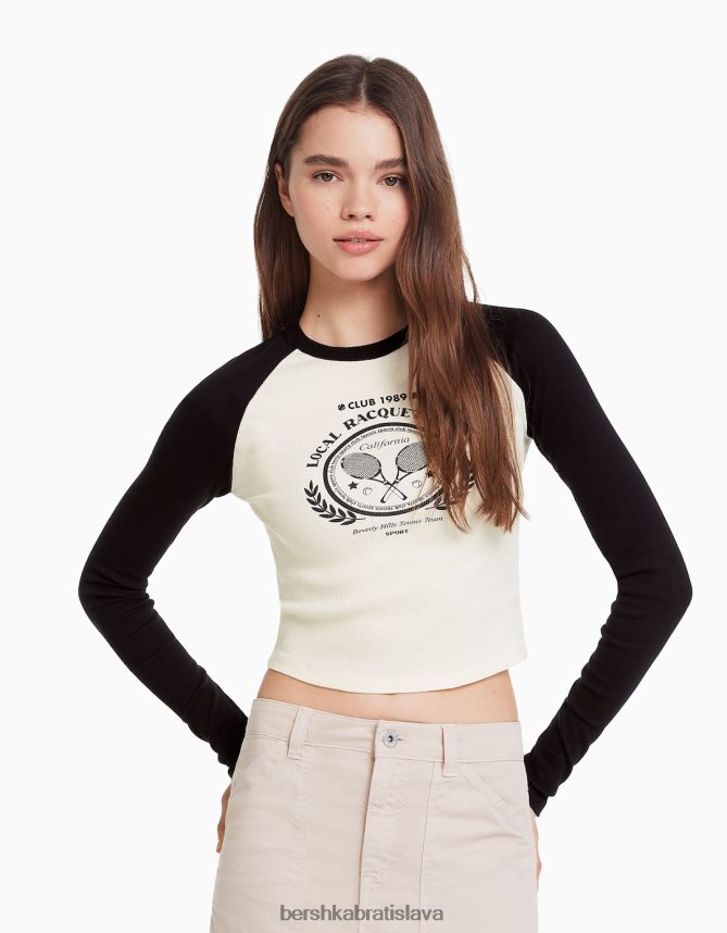 Bershka ženy tričko s dlhým rukávom v raglánovom štýle biela/čierna oblečenie B86RXX643 Bershka Slovakia