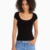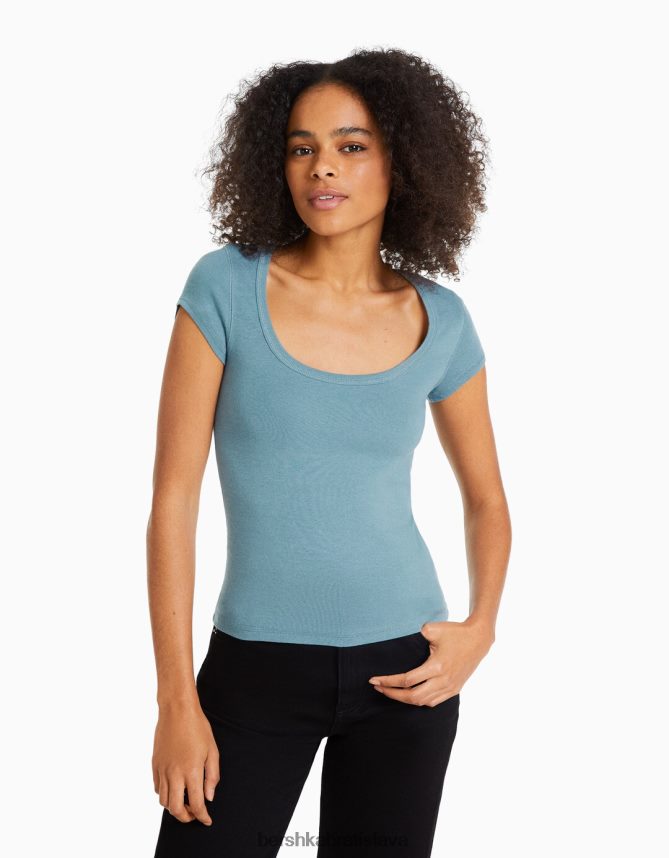 Bershka ženy tričko s krátkym rukávom a výstrihom vymytá modrá oblečenie B86RXX568 Bershka Slovakia
