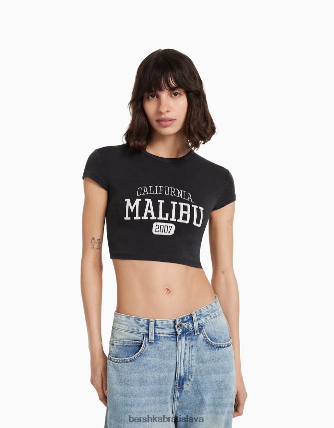 Bershka ženy tričko s krátkym rukávom s potlačou tmavo šedá oblečenie B86RXX492 Bershka Nohavice