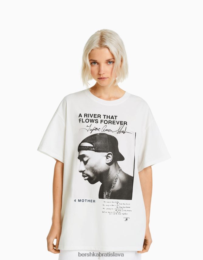 Bershka ženy tričko s krátkym rukávom s tupac potlačou off white oblečenie B86RXX342 Bershka Nohavice