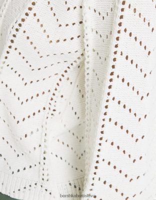 Bershka ženy otvorený pletený sveter s hranatým výstrihom krém oblečenie B86RXX1046 Bershka Rifle