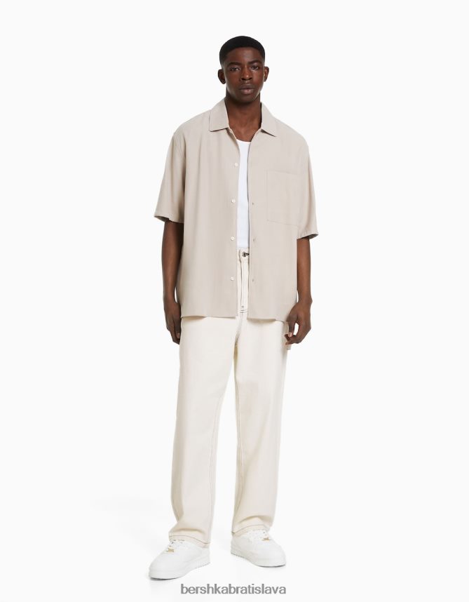 Bershka muži carpenter džínsy off white oblečenie B86RXX3174 Bershka Nohavice