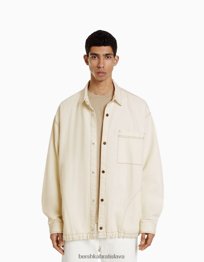 Bershka muži dlhé rukávové džínsové tričko s kontrastnou niťou so zarážkami krém oblečenie B86RXX2934 Bershka Nohavice