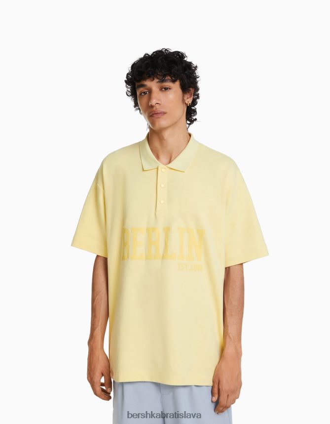 Bershka muži interlocková polokošeľa s berlínskou potlačou vápno oblečenie B86RXX2802 Bershka Nohavice
