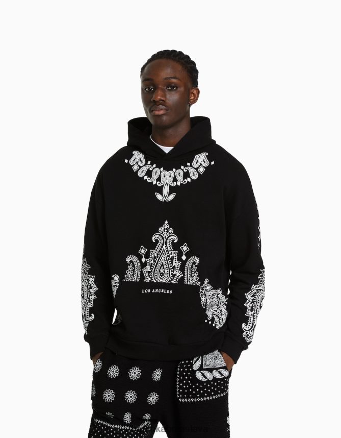 Bershka muži oversize mikina s paisley potlačou čierna oblečenie B86RXX2982 Bershka Nohavice