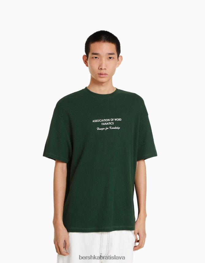 Bershka muži oversize tričko s krátkym rukávom s vafľovou potlačou zelená oblečenie B86RXX2758 Bershka Slovakia