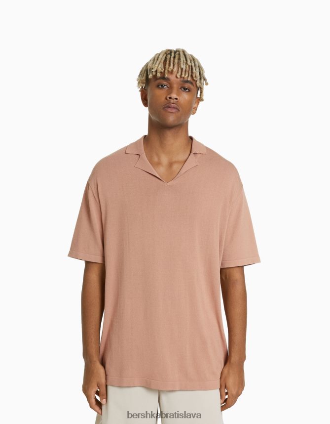Bershka muži polokošeľa s krátkym rukávom a rezortným golierom ružová oblečenie B86RXX2820 Bershka Nohavice