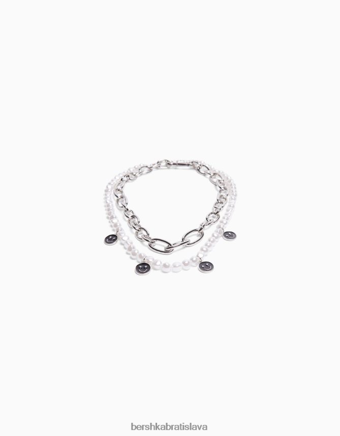Bershka muži sada 2 náhrdelníkov z umelej perly a retiazky striebro príslušenstvo B86RXX3681 Bershka Nohavice