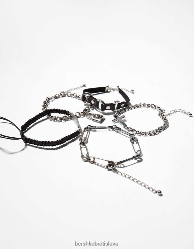 Bershka muži sada 5 zatváracích náramkov čierna príslušenstvo B86RXX3656 Bershka Rifle