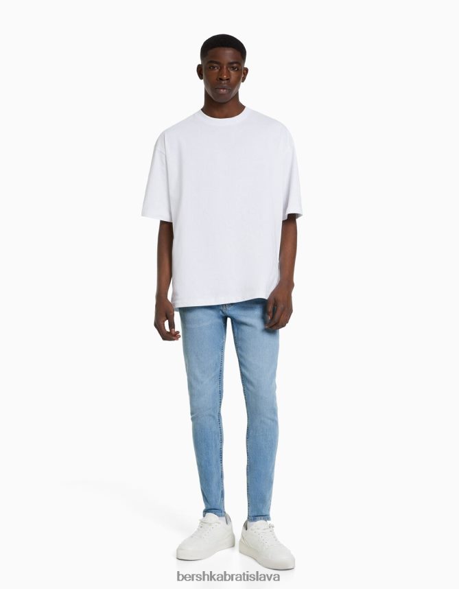 Bershka muži super úzke džínsy svetlo modrá oblečenie B86RXX3149 Bershka Rifle