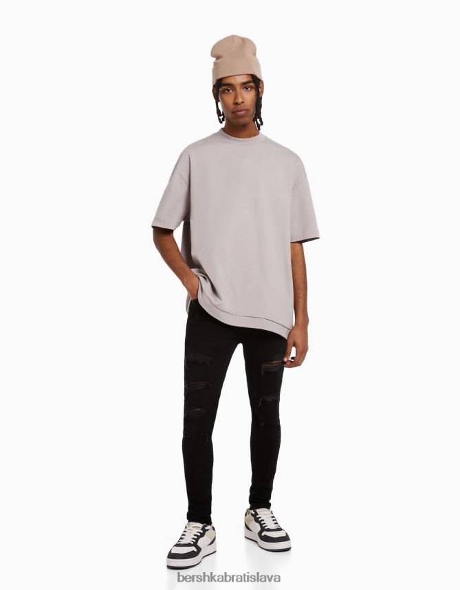 Bershka muži super úzke roztrhané džínsy čierna oblečenie B86RXX3190 Bershka Slovakia