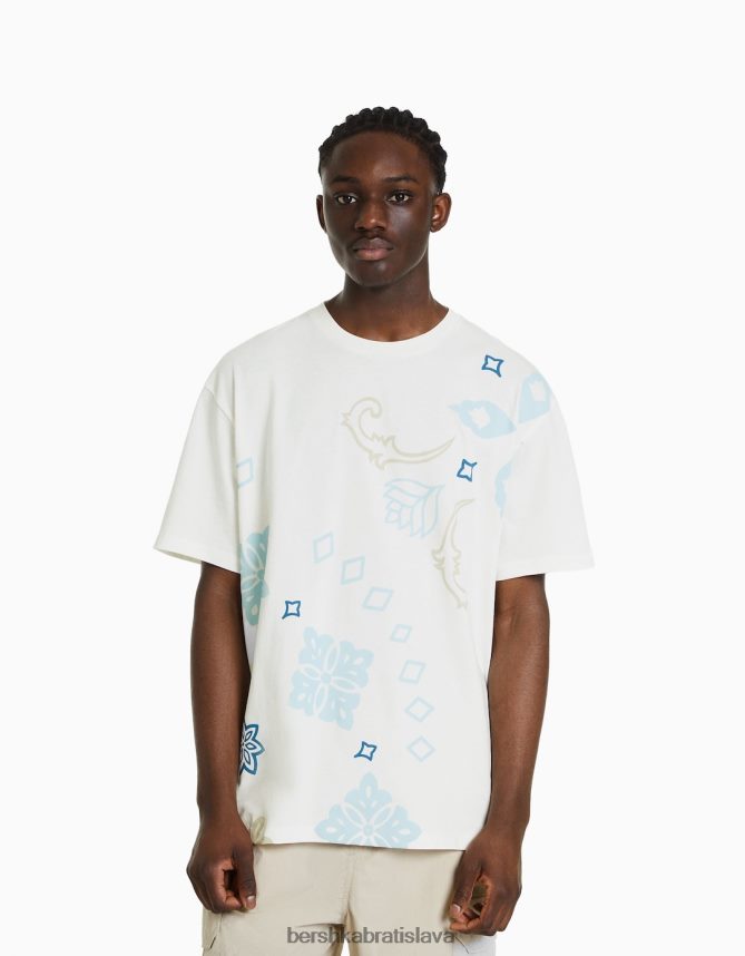 Bershka muži tričko boxy fit s krátkym rukávom s potlačou off white oblečenie B86RXX2704 Bershka Slovakia