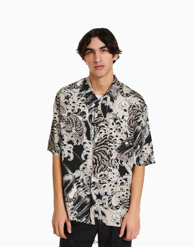 Bershka muži tričko s krátkym rukávom s potlačou čierna oblečenie B86RXX2871 Bershka Nohavice