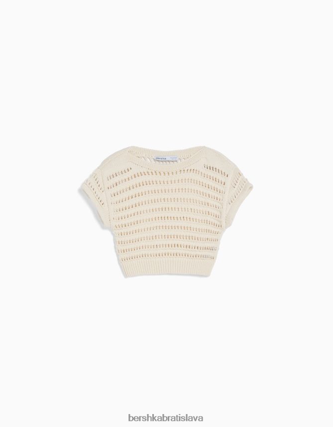 Bershka unisex otvorený pletený sveter s krátkym rukávom krém oblečenie B86RXX3714 Bershka Nohavice