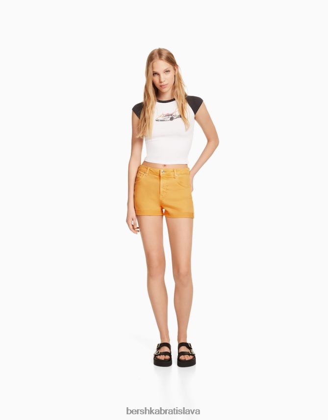 Bershka unisex pohodlné keprové šortky s vyhrnutým lemom žltá oblečenie B86RXX4030 Bershka Slovakia