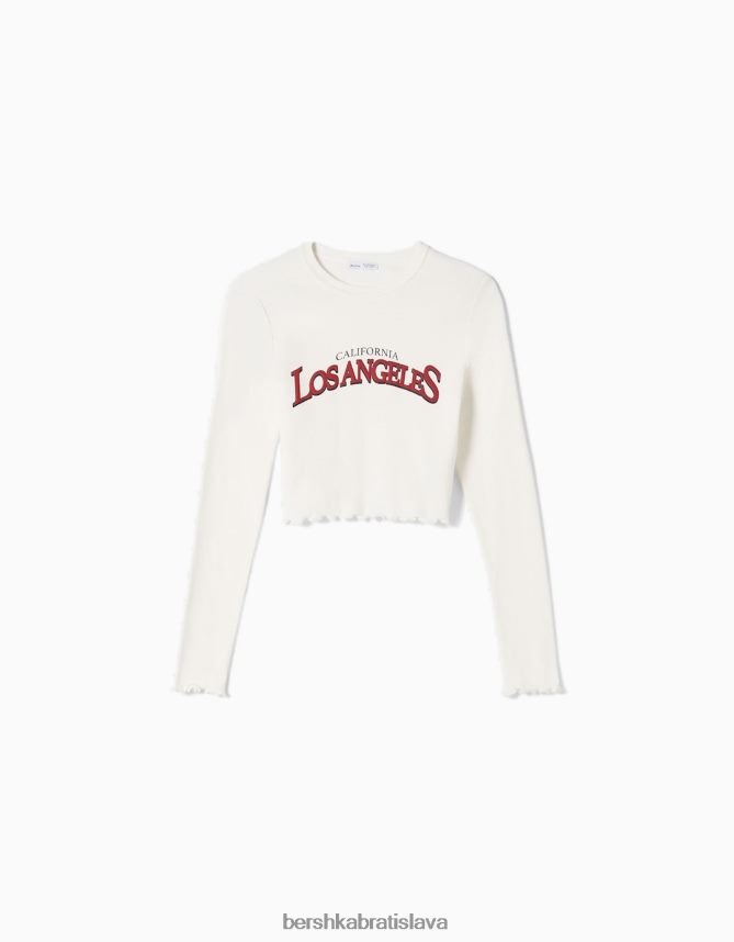 Bershka unisex skrátené tričko s dlhým rukávom a potlačou biela oblečenie B86RXX3834 Bershka Nohavice