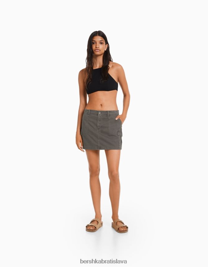 Bershka ženy bavlnená minisukňa cargo tmavo šedá oblečenie B86RXX1369 Bershka Slovakia