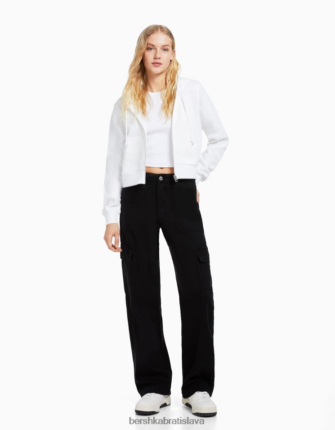 Bershka ženy cargo džínsy rovného strihu čierna oblečenie B86RXX1352 Bershka Rifle