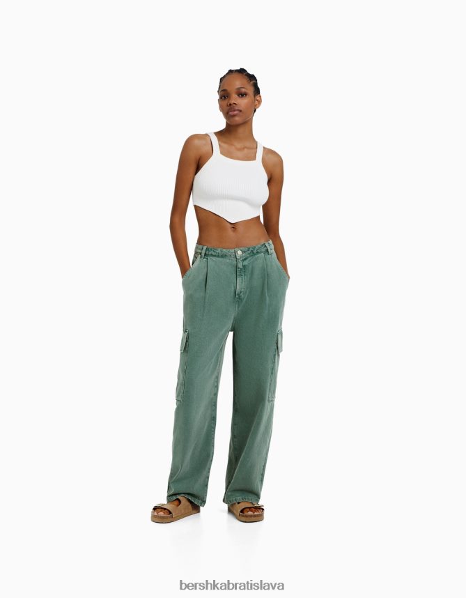 Bershka ženy cargo nohavice balónového strihu kaki oblečenie B86RXX1358 Bershka Rifle