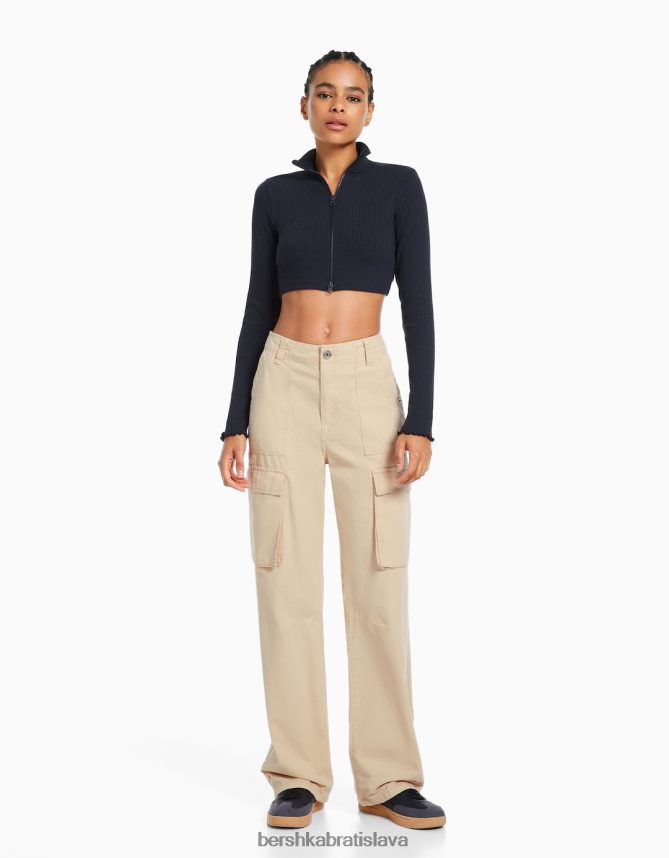Bershka ženy cargo nohavice rovného strihu piesku oblečenie B86RXX1305 Bershka Nohavice